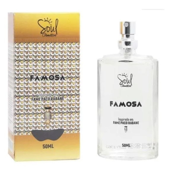 O Perfume Famosa 50 ml da Soul Cosméticos é uma fragrância envolvente e luxuosa, inspirada no icônico perfume Fame Paco Rabanne. Essa versão traz uma combinação única de notas olfativas que capturam a essência do perfume original, proporcionando uma experiência olfativa marcante e memorável.